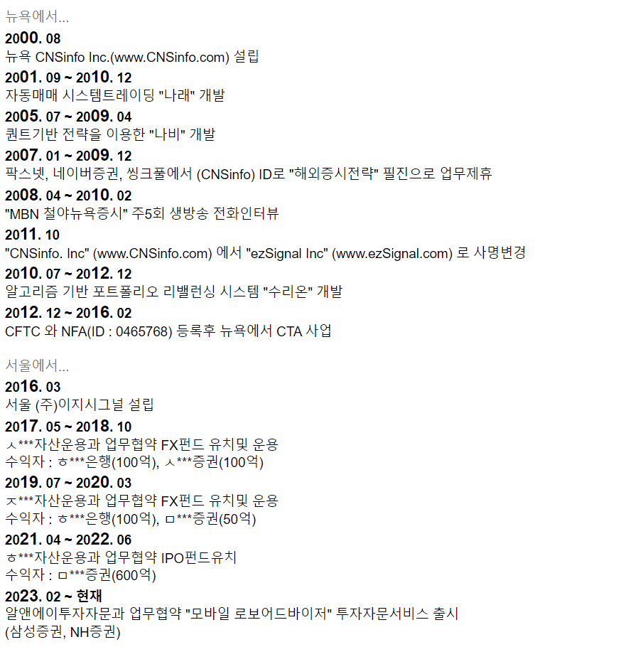 21세기 최고의 금융혁신 상품이라고 일컬어지는 ETF를 투자 대상자산으로 하여 개별 투자자들의 투자금액 크기와 관련 없이 효율적 위험분산 효과로 인한 안정성과 지속적인 성과를 실현하는 양방향 매매를 이용해 절대수익을 추구합니다. 이에 더해 최적화된 양방향 매매타이밍 시그널을 제공하는 모바일 로보드바이저 RA(Robot Advisor)를 최종 고객에게 실시간 전달하는 SNS(매매시그널 알림)를 활용하여 고객에게 적시에 서비스를 제공합니다.